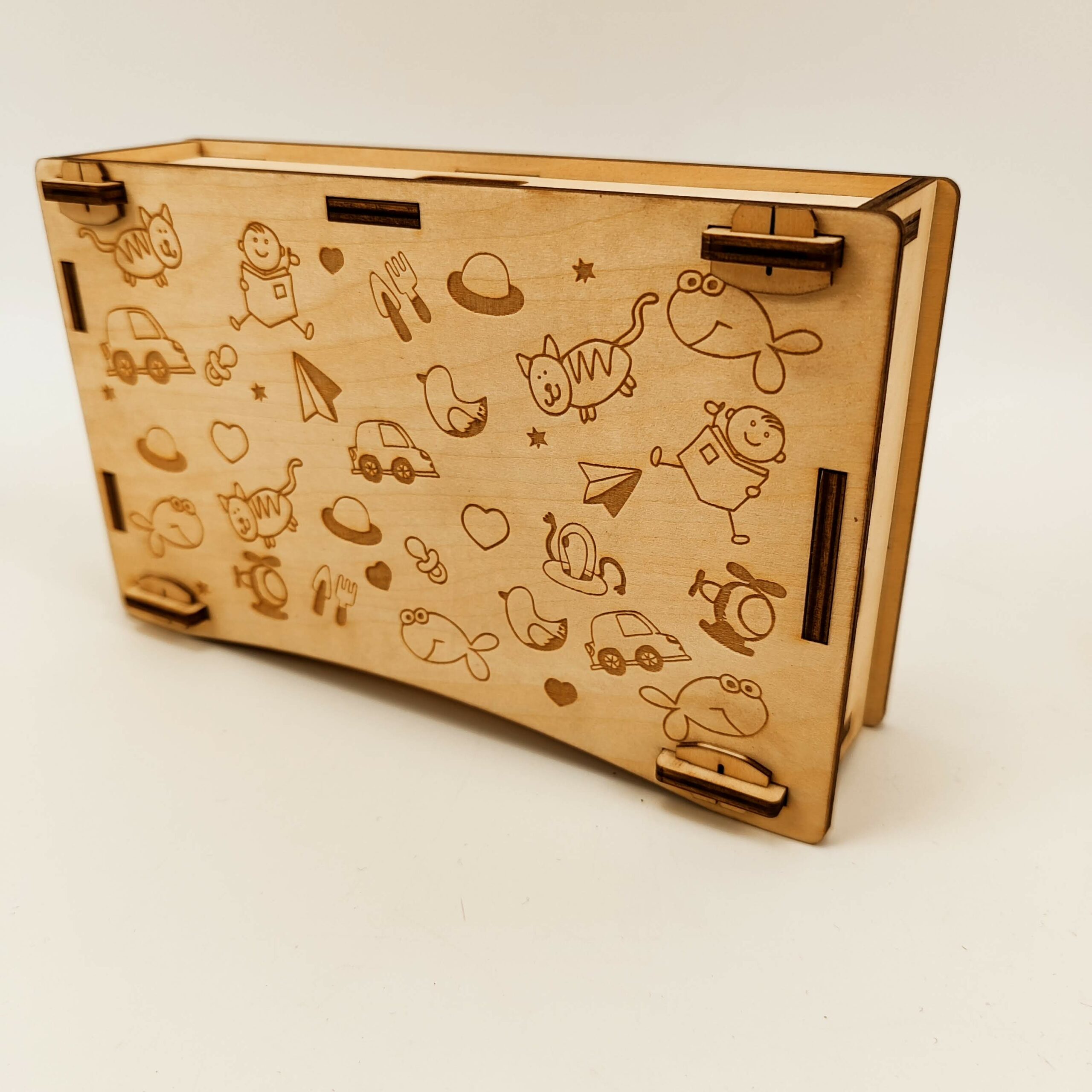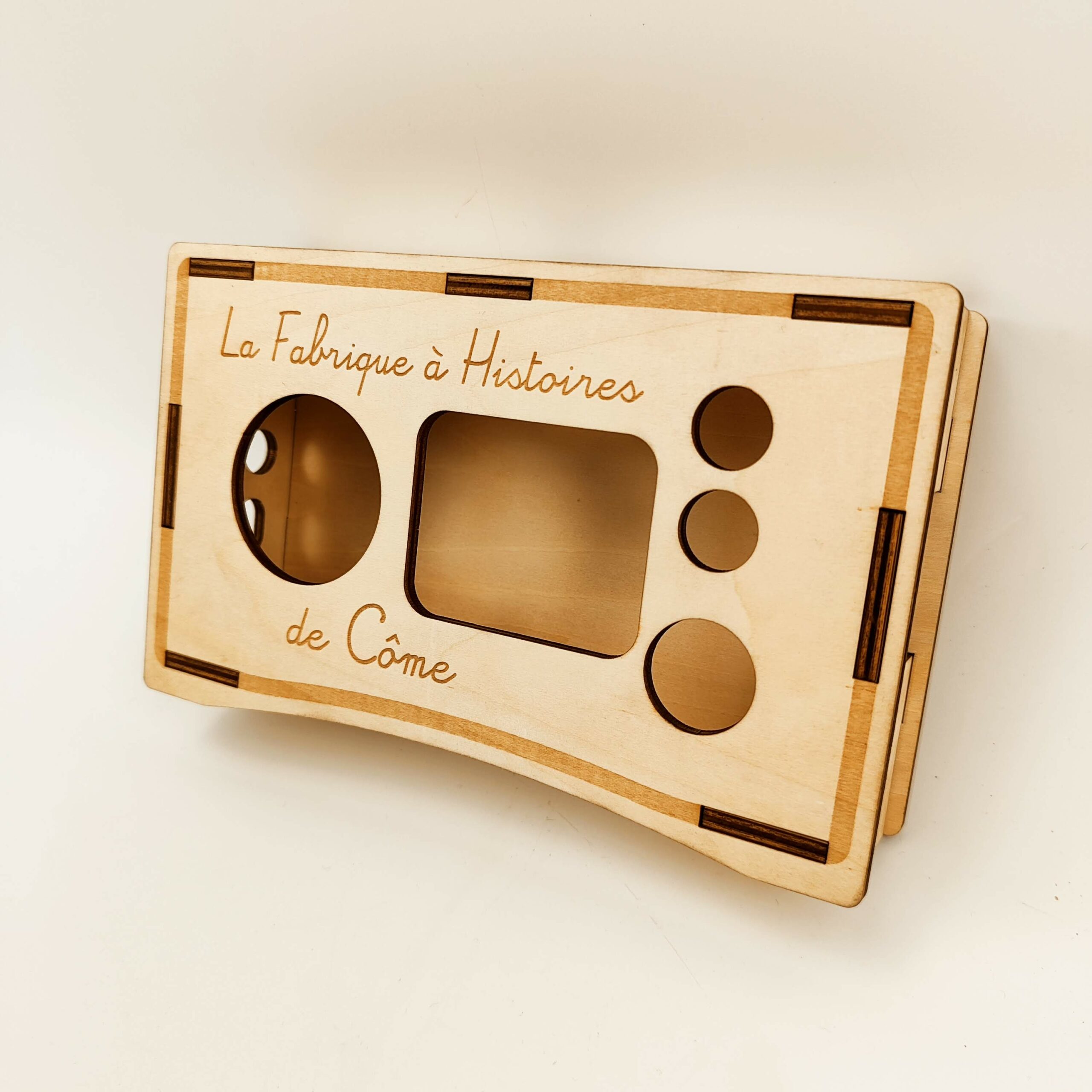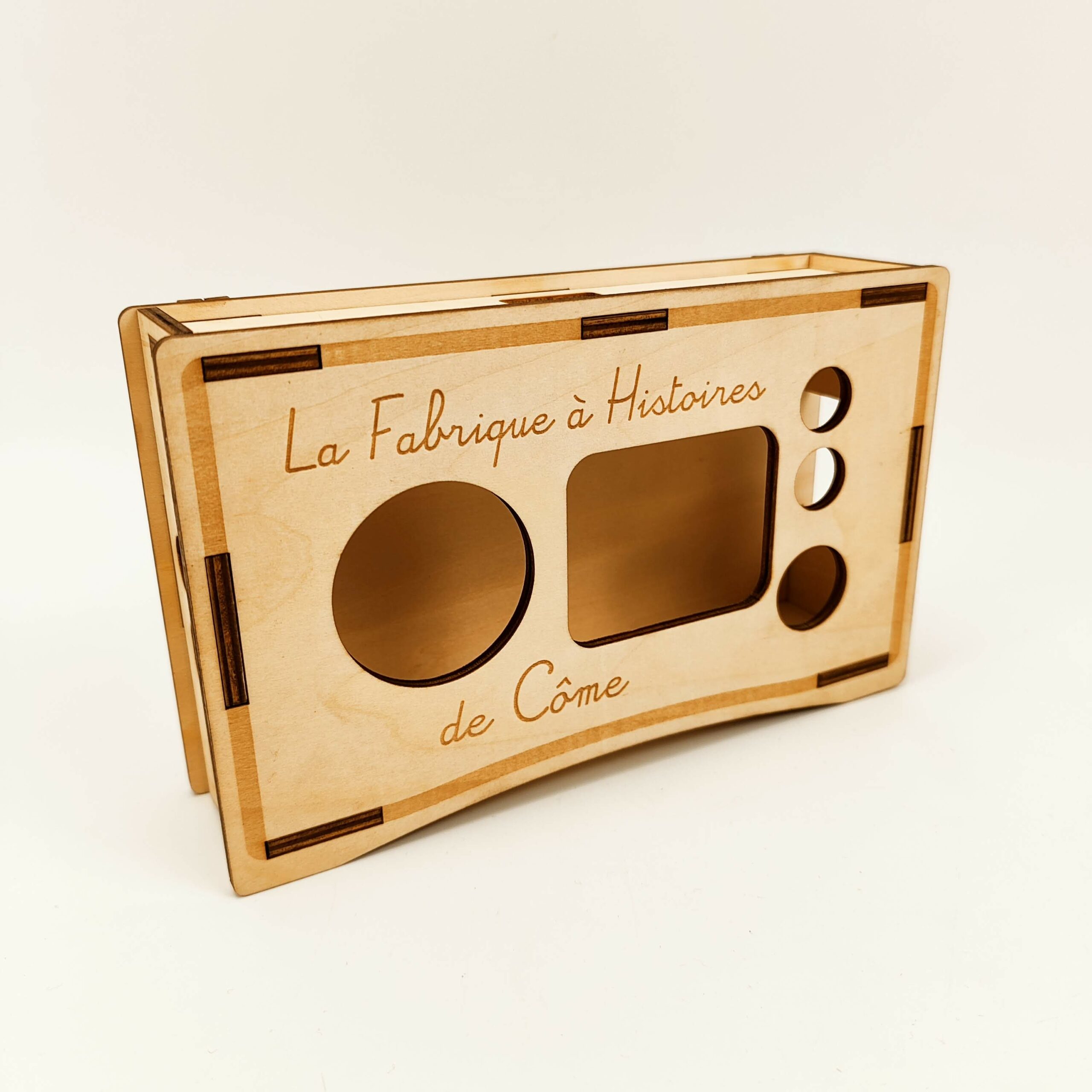 Gravé au prénom de l’enfant, ce boîtier protège la conteuse tout en la rendant unique.