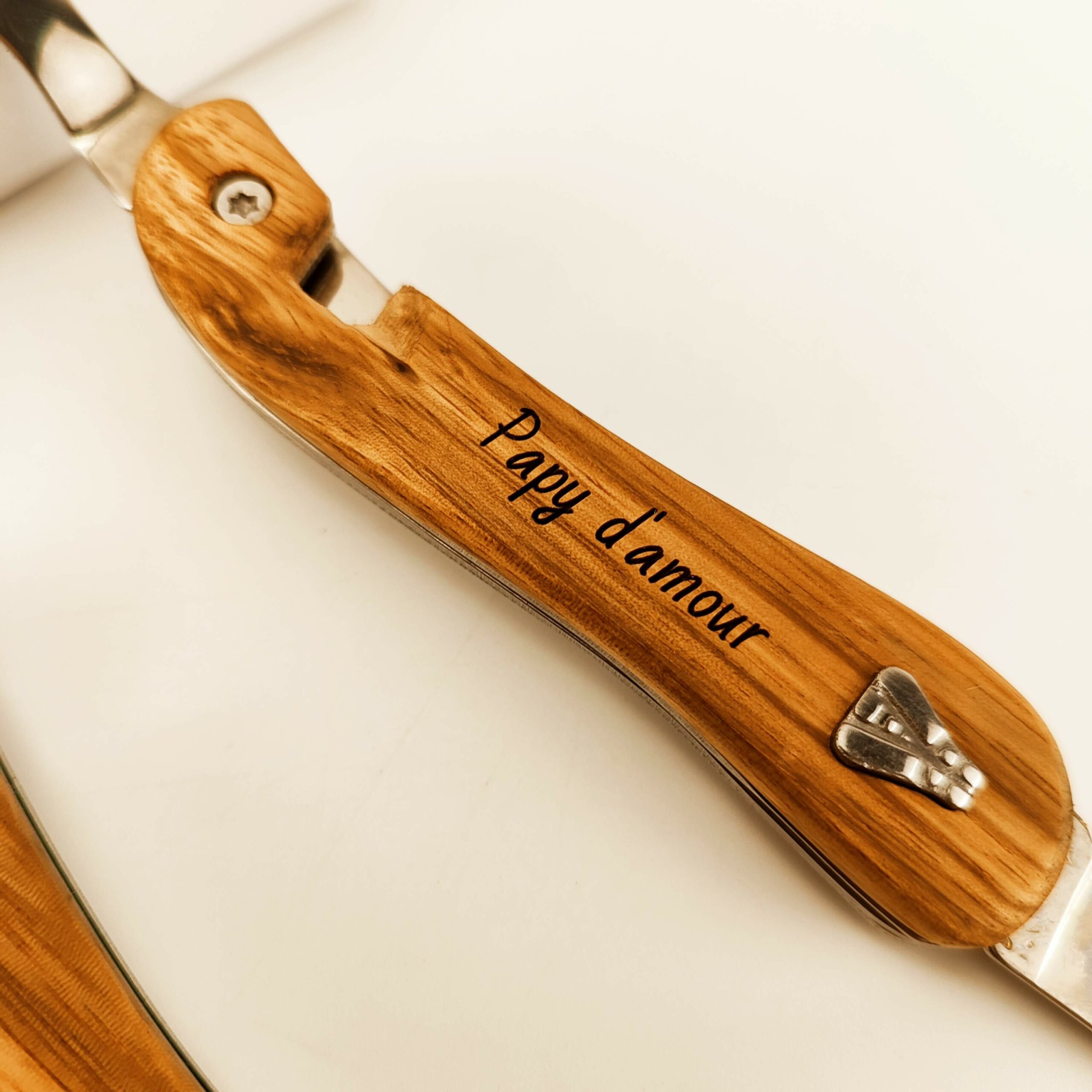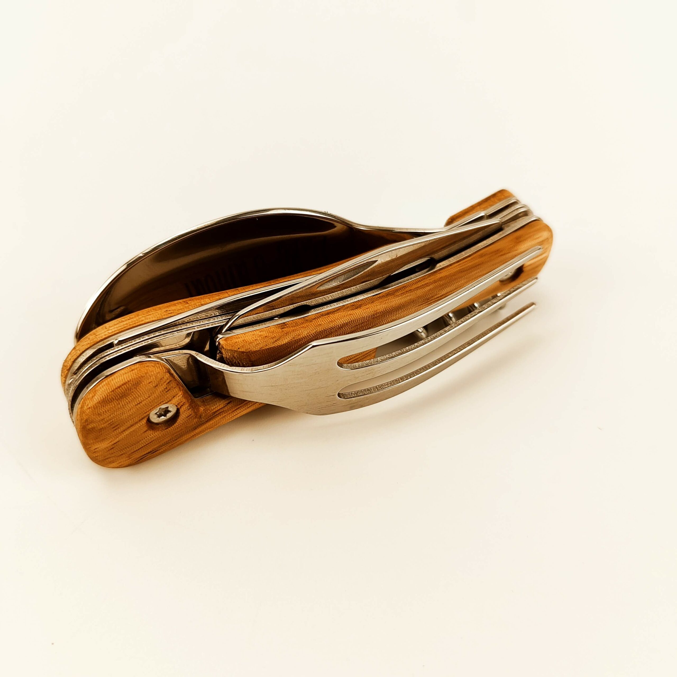Couverts de voyage pliants en acier inoxydable 420 de qualité alimentaire, avec manche en frêne.