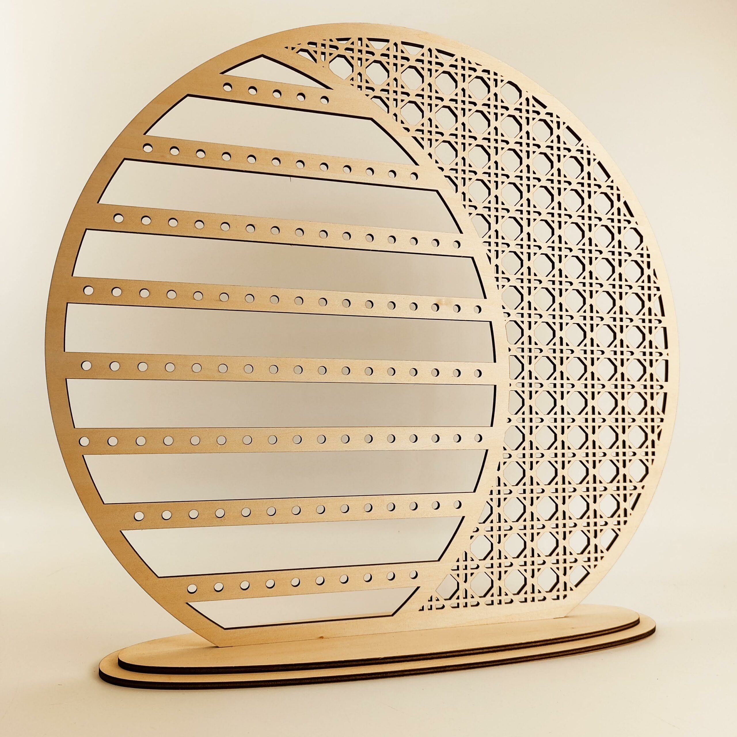 Grand support pour boucles d’oreilles en bois – Motif cannage rotin